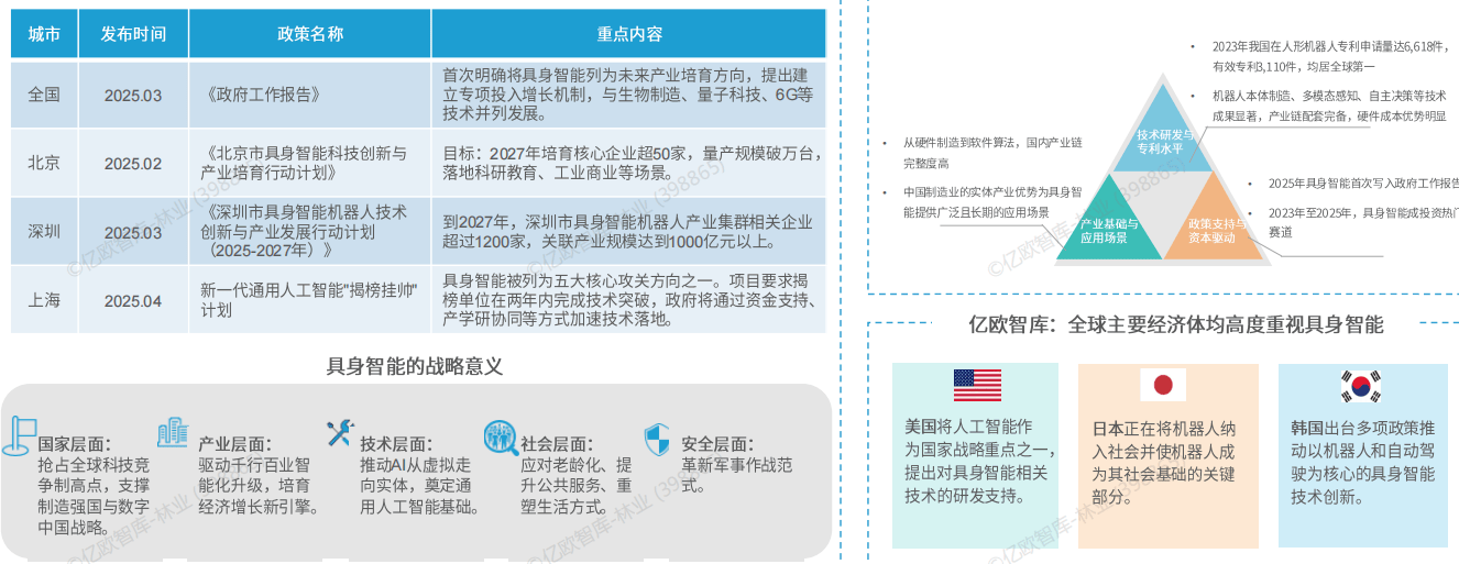 欧盟尺度制定处于领先程度,中国初次将“具身智能”写入工做演讲,全球次要经济体将以人形机械报酬代表的具身智能上升到国度计谋,成为将来财产培育的沉点标的目的。如工场出产、安防巡检、办事业指导等,不竭提拔细分范畴关心度。更远的将来。